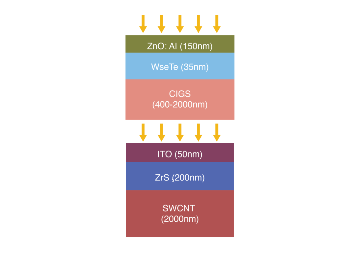“To the best of our knowledge, this is the first attempt to build tandem solar cells based on CIGS and SWCNT,” the research’s corresponding author, Alok Patel, told pv magazine. “In the top cell, we used an ultra-thin WSeTe, which is a compound belonging to the transition metal dichalcogenide group, as a buffer layer to reduce the absorption loss. In the bottom cell, we used a buffer layer made of zirconium disulfide (ZrS2), which also belongs to the transition metal dichalcogenide group.”