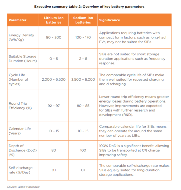 The report states SIBs make a viable choice for grid-scale storage applications with their comparable lifecycle, enhanced safety, and lower cost relative to LIBs.
