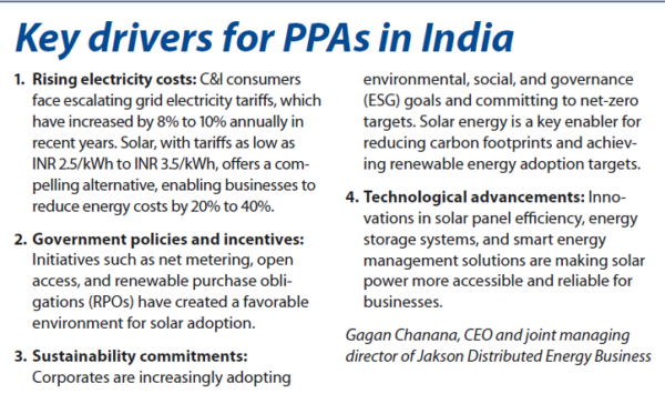 “This substantial growth is driven by escalating grid tariffs, which, in some regions, have increased by up to 15% annually. Combined with the decreasing cost of solar modules, which have fallen by nearly 30% in the last two years, the economic case is compelling,” said Gagan Chanana, CEO and joint managing director of Jakson Distributed Energy Business.