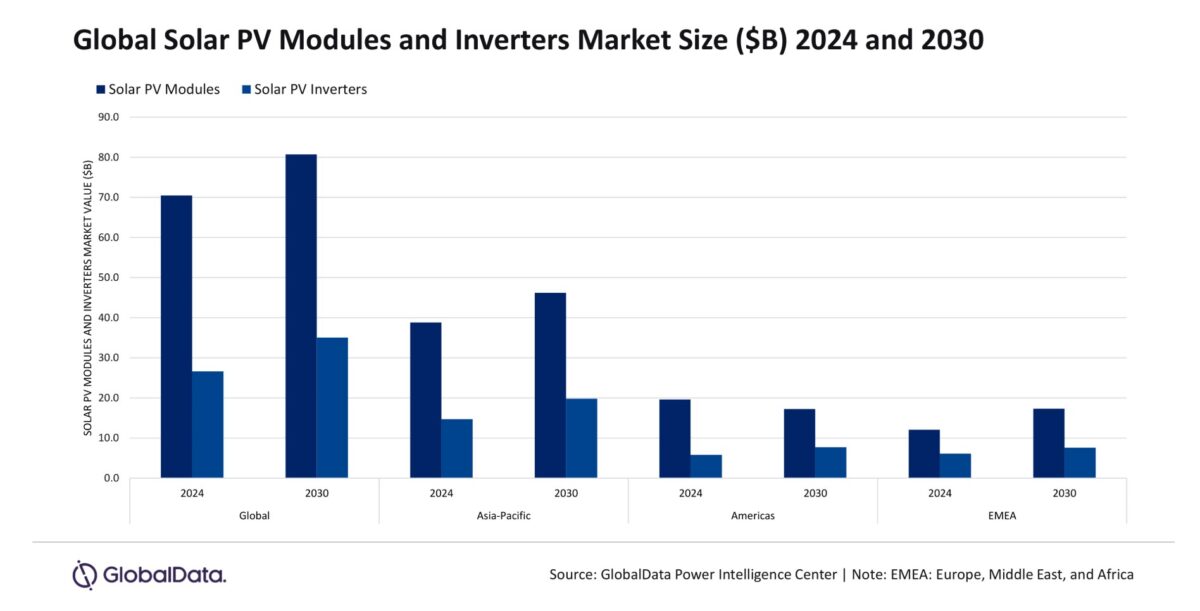 GlobalData says the increase will be largely driven by strong policy initiatives in the Asia Pacific (APAC) region, with the APAC solar module market expected to reach $46.2 billion in 2030, up from $38.8 billion in 2024.