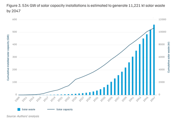 The twin CEEW studies provide India’s first comprehensive blueprint for building a domestic solar recycling ecosystem that supports both clean energy and manufacturing self-reliance. By 2047, India’s installed solar capacity could generate over 11 million tonnes of solar waste, with about 92% from crystalline-silicon modules. Managing this waste would require about 300 recycling facilities by 2047, with individual processing capacity of 3,600 tonnes per annum. The capital investment required is estimated to be INR 4,274 crore for setting up these facilities, the studies estimate.