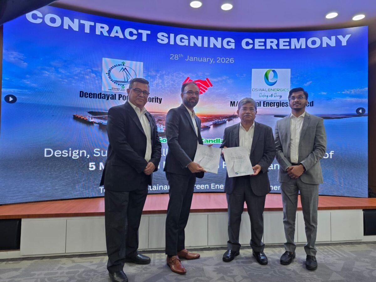Oswal Greenzo Energies, a joint venture between Oswal Energies Ltd and Greenzo Energy India Ltd, has been awarded a contract for the design, supply, installation, testing, and commissioning of a 5 MW green hydrogen plant at Deendayal Port, Kandla. The project is being developed under the Government of India’s Sagarmala Initiative.