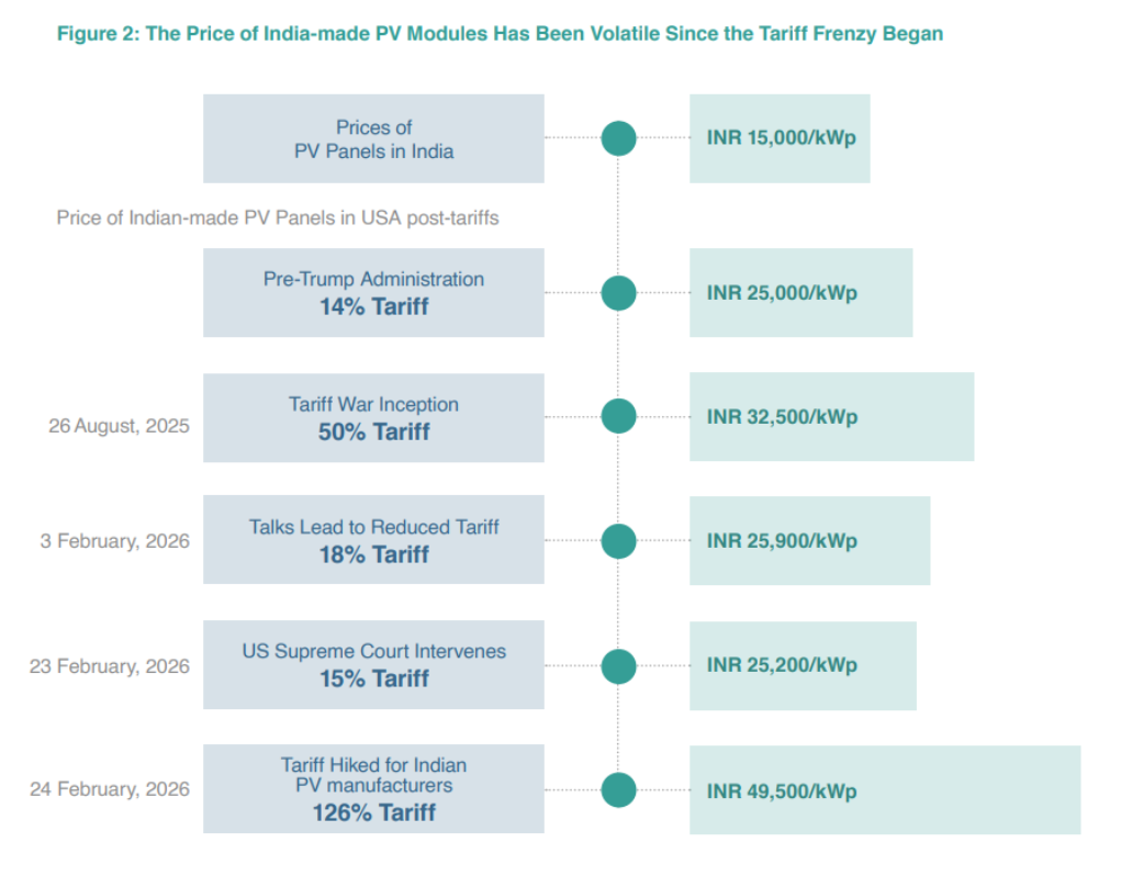 Since the beginning of February 2026, the tariff rates have changed every few days. As of early March, Indian-made solar modules incur a 126% tariff in the US.